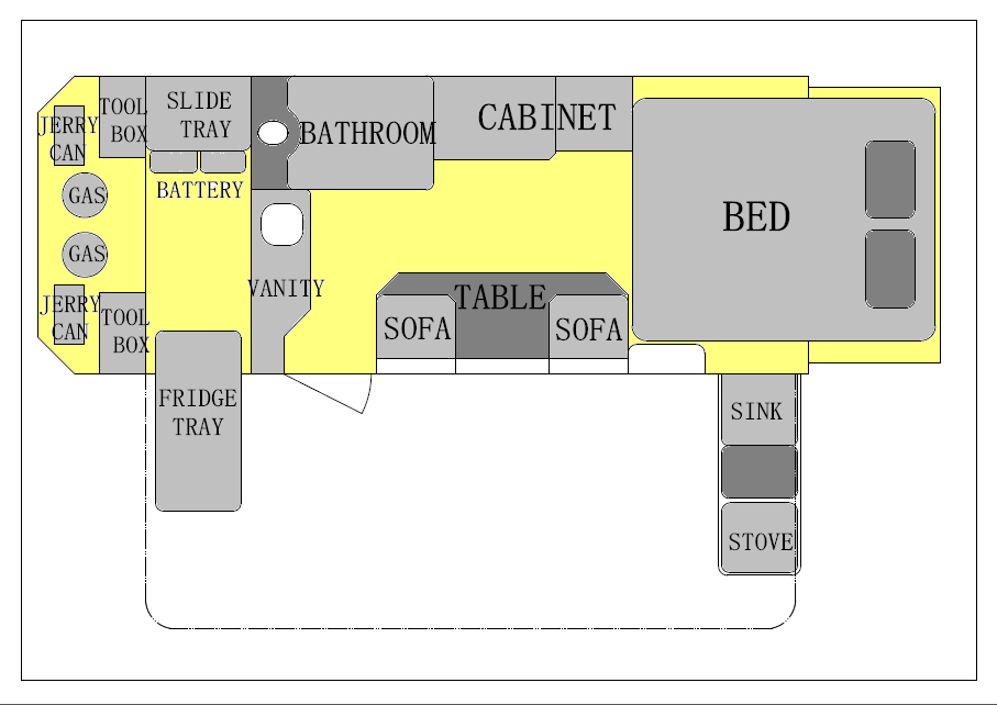 | BODY CONSTRUCTION | Aluminium composite panel walls body, solid fiberglass roof & frontage, underbody deadener protecting frame. |